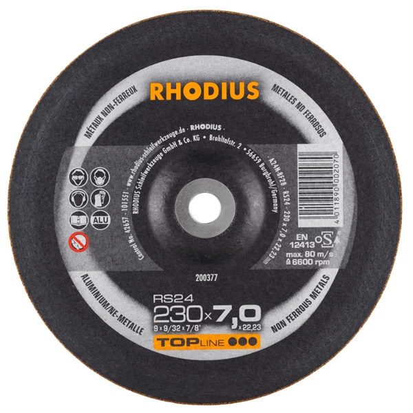 Disque à Meuler Diamètre 230 Disque à Meuler Acier Et Inox RS38 Rhodius 230 X 7.0 X 22.23 Mm